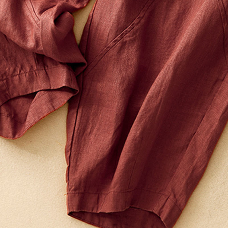 Buddha Stones Casual Plain Cropped Pants Women's Cotton Linen Harem Pants With Pockets - Maroon - US8-10,UK/AU12-14,EU40-42 (2XL) - image 15