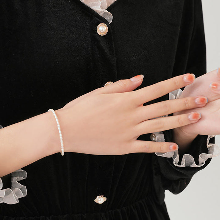 Buddha Stones 2mm Natural Pearl Ultra-thin Beads 14k Gold Plated Copper Wisdom Bracelet