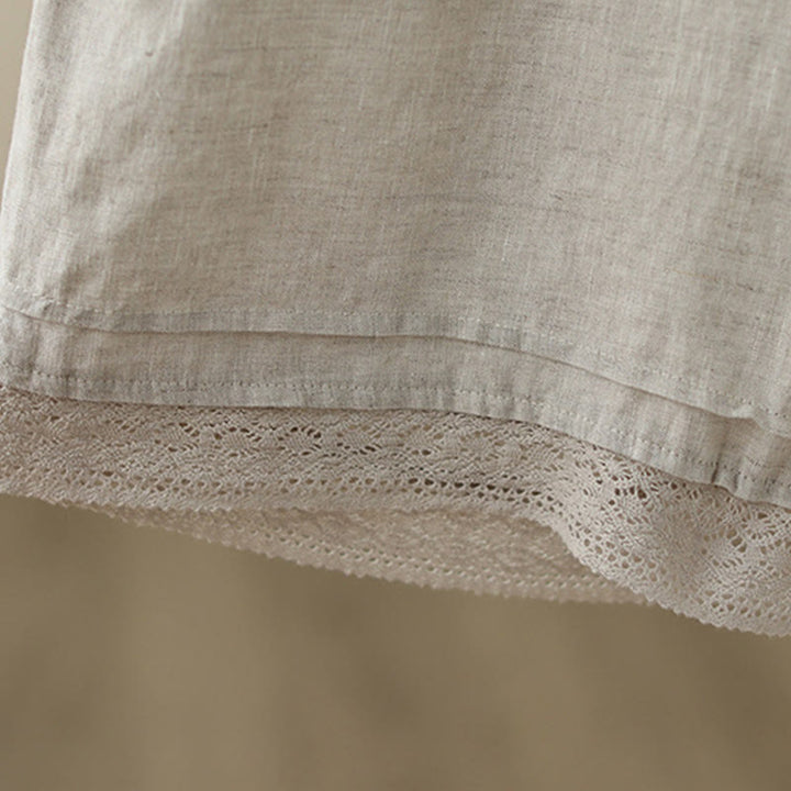 Buddha Stones Commute Retro Plain Lace Patchwork Design 7-8 Length Women's Wide Leg Cotton Pants With Pockets