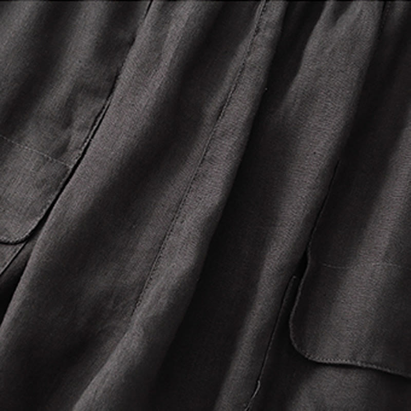 Buddha Stones Summer Casual Plain Cotton Linen Women's Elasti Straight Shorts With Pockets