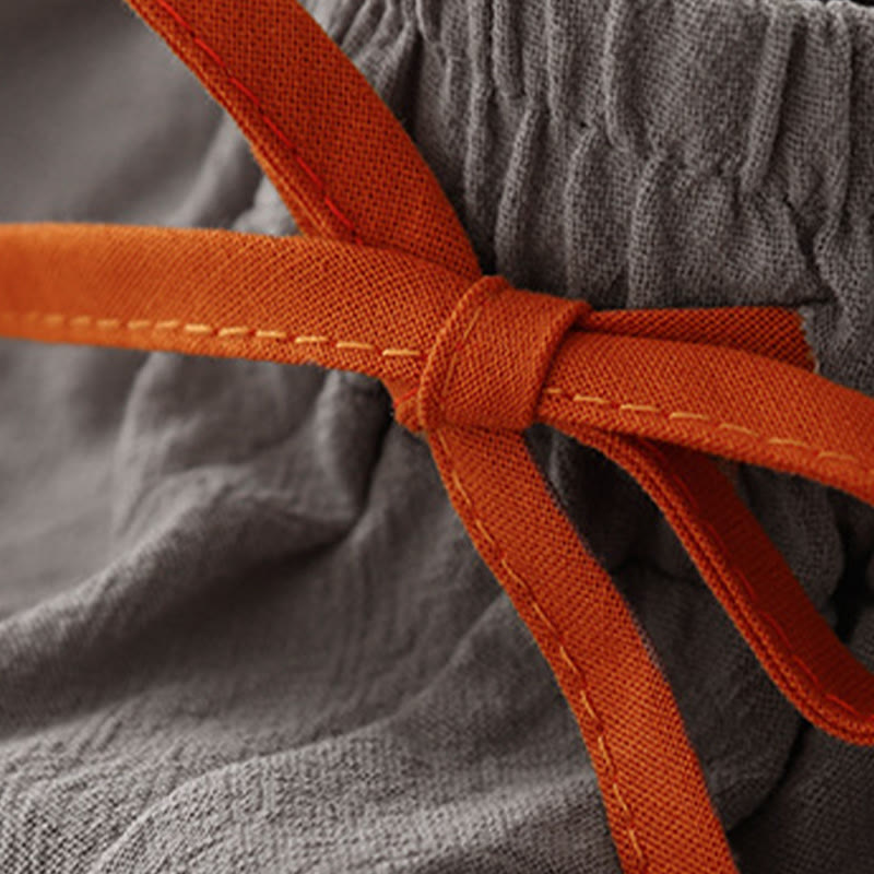Buddha Stones Casual Simple Design Drawstring Split Cotton Linen Women's Wide Leg Pants With Pockets