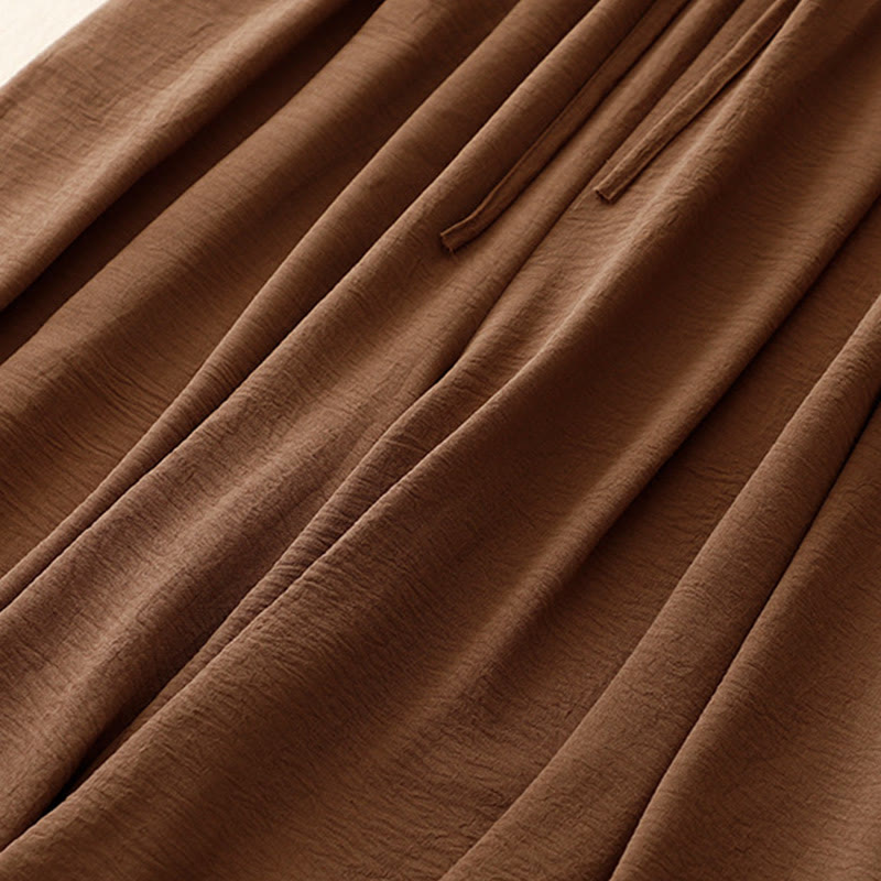 Buddha Stones Causal Ethnic Simple Drawstring Design Women's Wide Leg Cropped Pants With Pockets - SaddleBrown - US8-10,UK/AU12-14,EU40-42 (2XL) - image 0