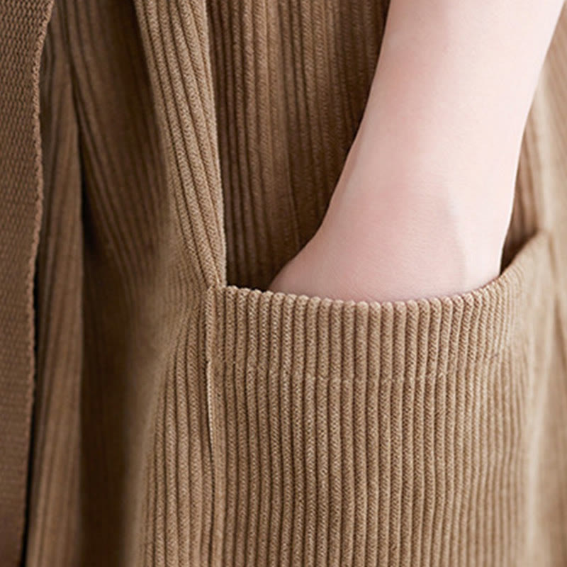 Buddha Stones Retro Women's Wide Leg 7-8 Length Corduroy Pants With Pockets Belt
