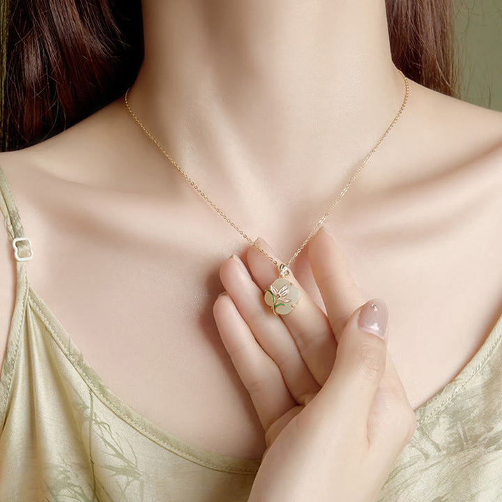 Buddha Stones 925 Sterling Silver Magnolia Butterfly Hetian Jade Four Leaf Clover Blessing Earrings Necklace Pendant - Hetian Jade Necklace - 925 Sterling Silver Plated Rose Gold - image 7
