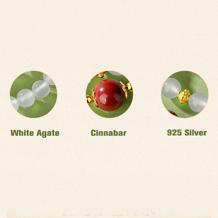 Buddha Stones 925 Sterling Silver Natural White Agate Cinnabar Double Wrap Protection Bracelet