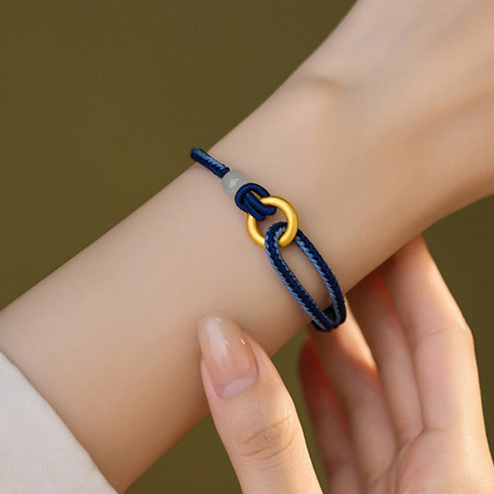 Buddha Stones 999 Sterling Silver Peace Buckle Hetian Jade Rope Fortune Bracelet